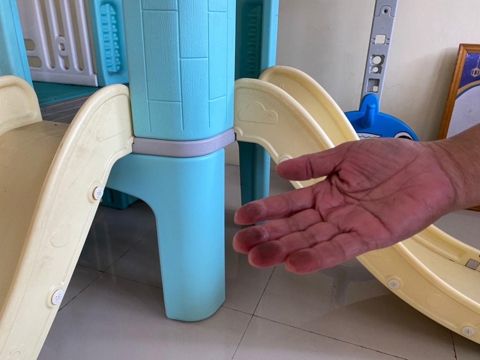 Sambil menjelaskan soal debu batu bara. Evi sesekali menunjukan bagaimana debu tersebut berada di tempat permainan anak. Ia pun memperlihatkan dengan tangannya bagaimana debu batu bara.