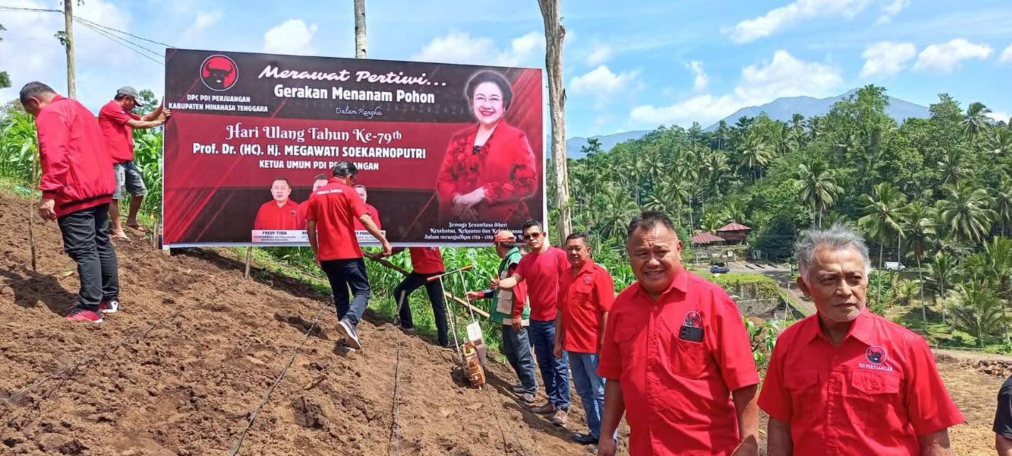 MITRA,SULAWESION.COM-Dalam rangka memperingati Hari Ulang Tahun (HUT) ke-79 Ketua Umum PDI Perjuangan, Prof. Dr. (H.C.) Megawati Soekarnoputri, Dewan Pimpinan Cabang (DPC) PDI Perjuangan Kabupaten Minahasa Tenggara (Mitra) menggelar kegiatan penanaman jagung di Desa Kuyanga, Kecamatan Tombatu, Jumat (23/1/2026).