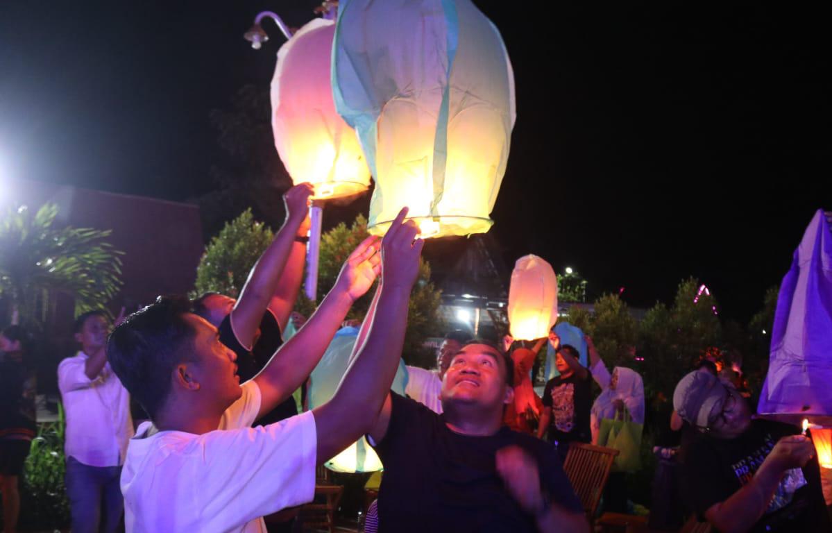 Di antara sorak gembira dan bunyi musik keroncong yang mengalun pelan, para pengunjung melepaskan lampion satu per satu. Setiap lampion membawa secarik doa, harapan, dan impian untuk masa depan.
