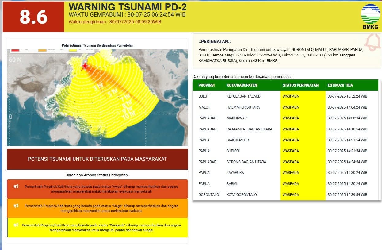 Gempa Guncang Rusia, BMKG: Potensi Tsunami Terjadi di Wilayah Sulut dan Gorontalo